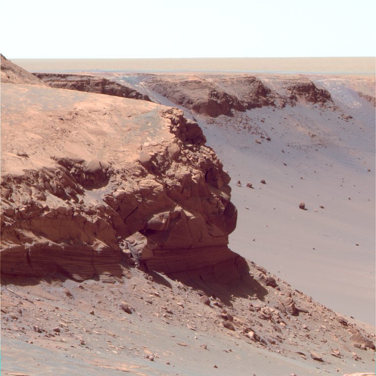 Opportunity begann, im Uhrzeigersinn um Victoria herumzufahren. Als erstes direkt zur Spitze der Klippe "Cape Verde".