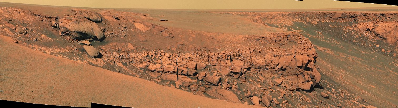Abb. 13: Blick auf die Klippe "Cape St. Vincent" am 12. März 2007, dem Sol 1111 von Opportunity auf der Marsoberfläche |