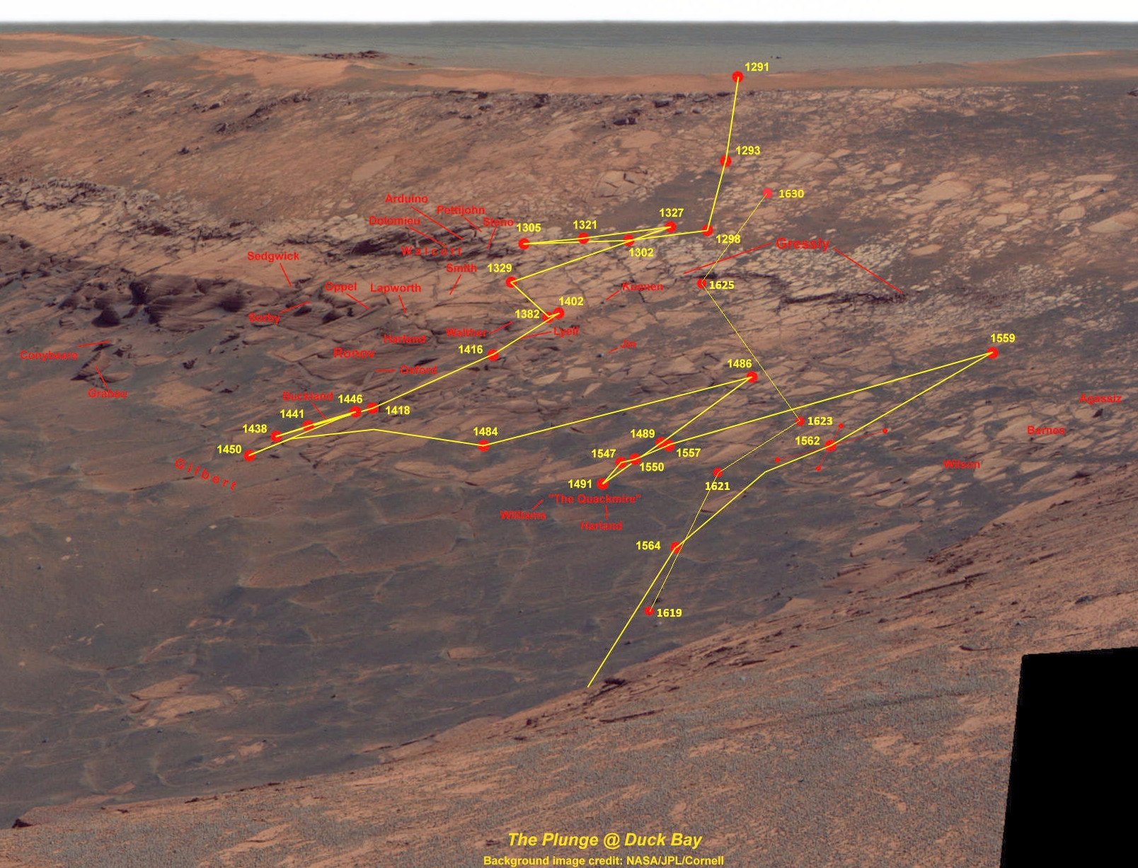 Abb. 5: Wegstrecke von Opportunity bis Sol 1630 |