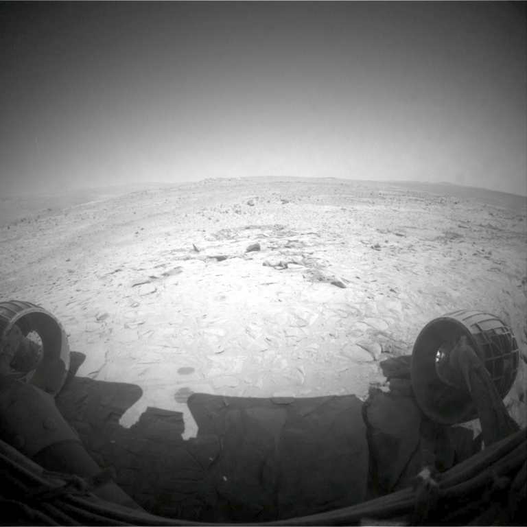 Bei der letzten Kommunikationssession konnte glücklicherweise auch ein weiterer Teil des sog. "Bonestell"-Panoramas heruntergeladen und das Flash-Memory des Rovers in Anbetracht der bevorstehenden solaren Konjunktion weiter geleert werden. Damit waren jetzt die Teilbilder der ersten zwei Reihen des Panoramas auf die Erde heruntergeladen, aufgenommen mit allen 7 Filtern der Bordkamera: