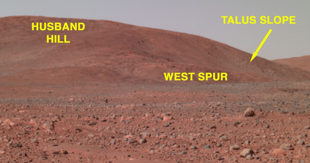 Am 09.Juni 2004 erreichte Spirit den mit "West Spur" bezeichneten Bereich der Columbia-Berge und hatte damit seine Traverse beendet. Dem Rover boten sich folgende spektakuläre Ansichten: