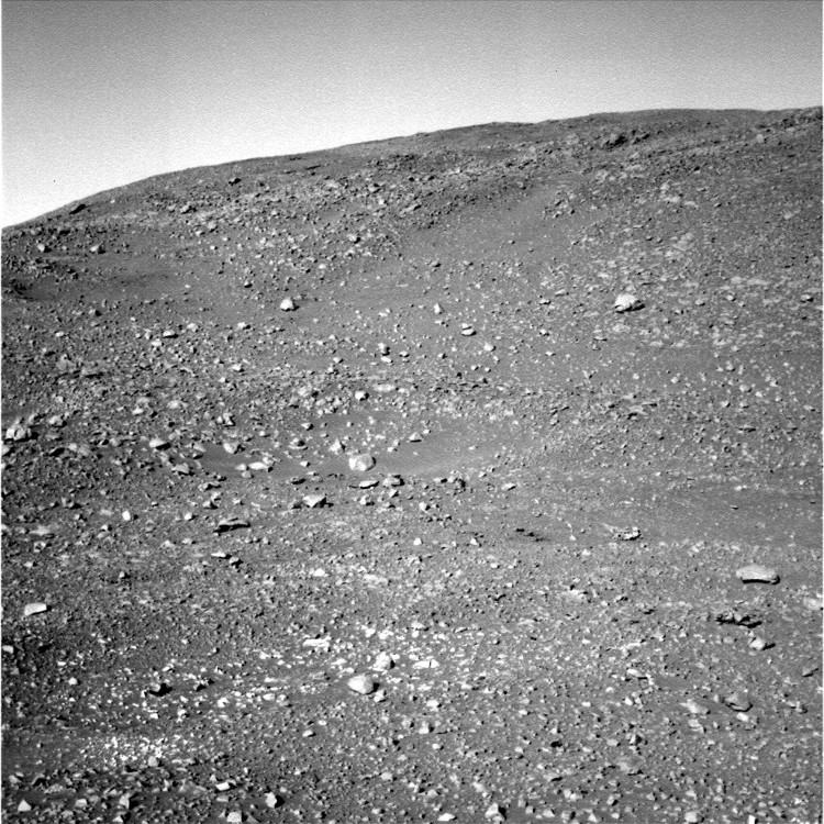 Anfang Juni 2004 - um Sol 145 herum - hatte sich Spirit auf weniger als 500m an die Basis der Columbia-Berge angenähert. Das Gelände wurde hier wieder etwas rauher und die automatische Navigation war des öfteren nicht in der Lage, einen Weg um die größeren Felsbrocken herum zu finden. Darum wurde der Rover meist von der Erde aus nach Sicht gesteuert, was die zurückgelegte tägliche Wegstrecke deutlich verkürzte und selten an mehr als 30-50m pro Tag herankam.