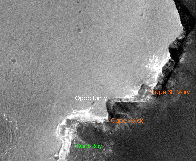 | direkter Blick auf Opportunity auf der Klippe "Cape Verde" |