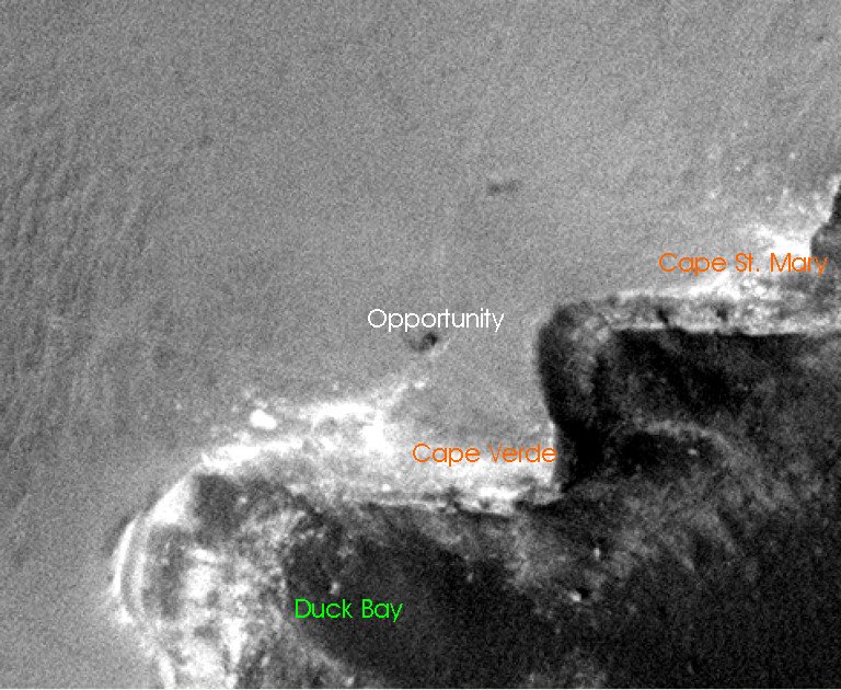Am 06. Juni 2007 überflog MRO erneut den Landeplatz von Opportunity in der Meridiani-Ebene und dokumentierte die Aktivitäten des Rovers auf der Marsoberfläche: Spuren und Markierungen auf der Oberfläche, hinterlassen von den Rädern des kleinen Raumschiffes.