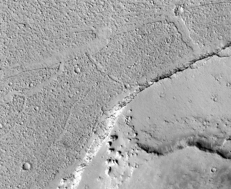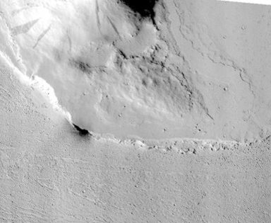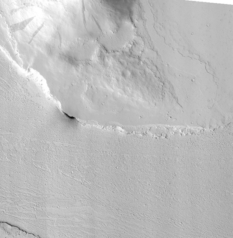 Im Marte Vallis nahm MRO im Juni 2007 einen Berg auf, der umgeben von einem steinernen, mit Eisschollen bedeckten Meer zu liegen scheint, ähnlich wie ein Eisberg im Packeis. Ein vergleichbares Bild hatte Mars Express im Februar 2005 fotografiert - "Packeis" in einem gefrorenen See, bedeckt von einer dünnen Schicht Staub oder Asche.