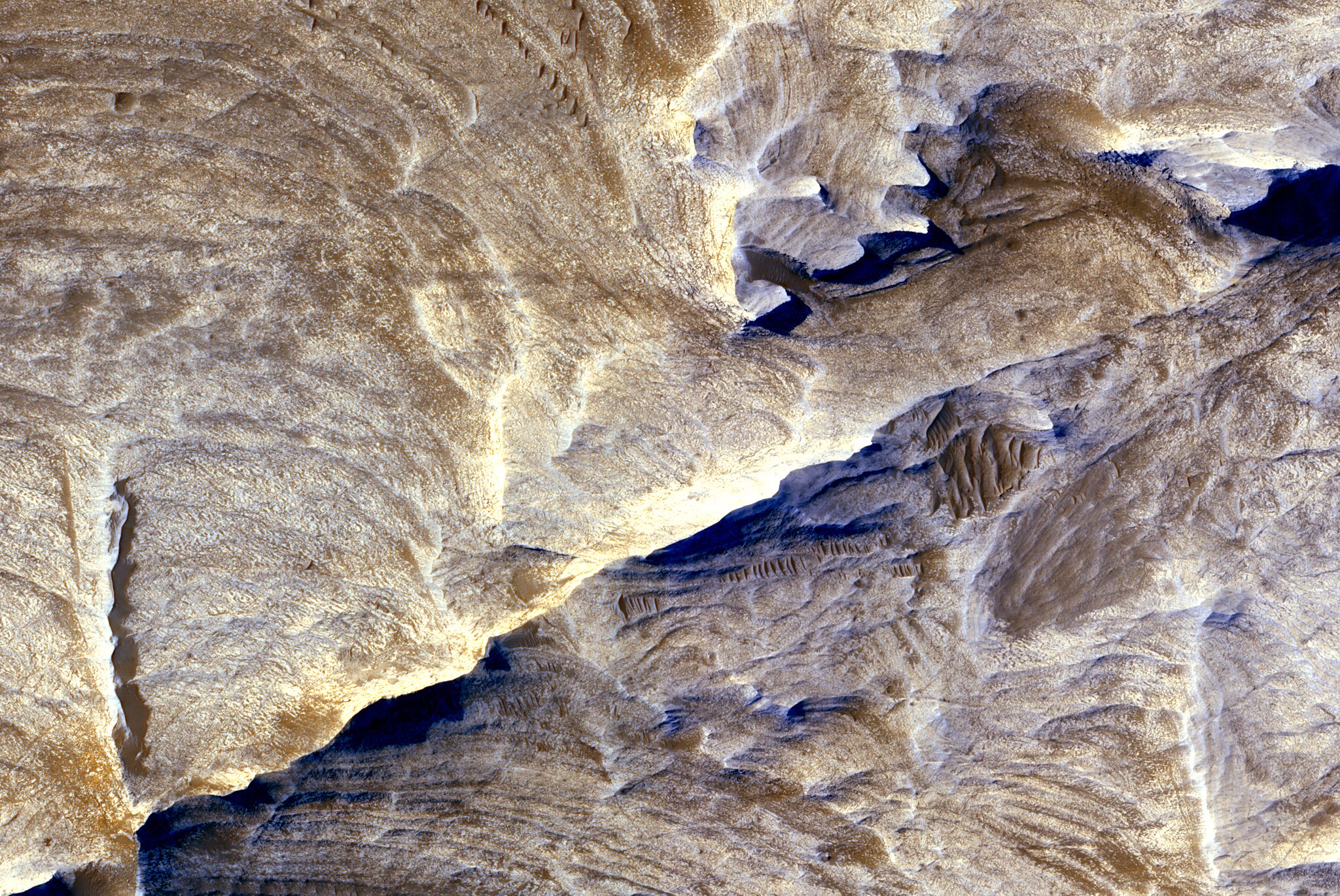 Am 17. Februar 2007 wurden neue Ergebnisse von MRO bei der Suche nach Spuren von Wasser auf dem Mars veröffentlicht (die Originalveröffentlichung ist hier). Es handelt sich um einen Ausschnitt der Candor Chasma Region des Mars im Valles Marineris Talsystem und zeigt die Überreste eines vor Jahrmillionen von Wasser durchflossenen Röhre ("joint"), die sich und die nächste Umgebung durch die in der durchfliessenden Flüssigkeit gelösten Salze gehärtet hat. Nach Verschwinden des Wassers begann die Verwitterung und das weichere Umgebungsmaterial wurde zuerst abgetragen, die härtere Röhre blieb übrig und kann heute als erhabener Berggrat beobachtet werden, genau wie in gleichen geologischen Formationen auf der Erde. Es wurden mittlerweile viele solcher Gebiete auf dem Mars entdeckt, das hier gezeigte ist jedoch mit eines der eindrucksvollsten: