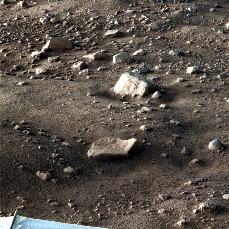 Eis in Form von Rauhreif, wie schon vorher einmal gesehen, wurde um diese Zeit noch nicht in größerem Umfang beobachtet, wie das folgende Bild aus Sol 96 zeigt: