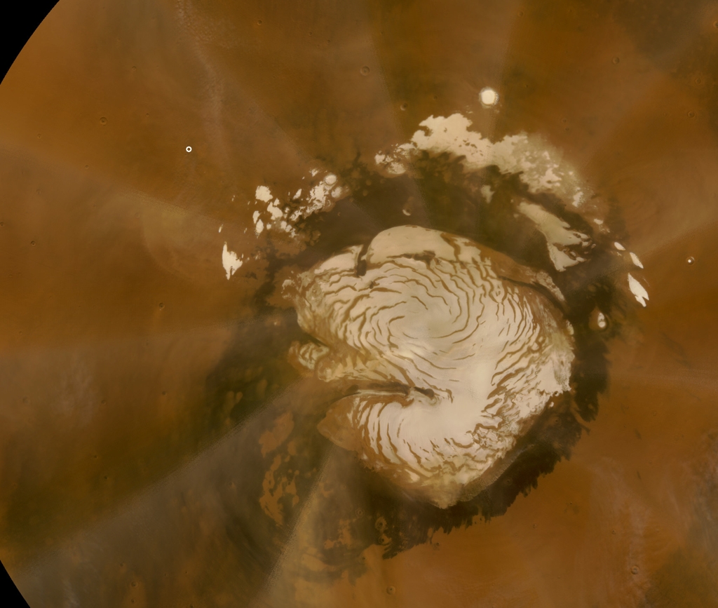 Abb. 6c: weitere tiefhängende Wolken am Standort von Phoenix an Sol 128. Die Bewölkung hatte offenbar zugenommen, eine Beobachtung, die verschiedene Orbiter bereits in früheren Mars-Nordsommern festgestellt hatten. Hier aber zum ersten Mal aus der Sicht vom Boden aus. Die Wolkenformationen waren recht kompakt. Niederschläge aus ihnen konnten zu diesem Zeitpunkt aber nicht beobachtet werden. |